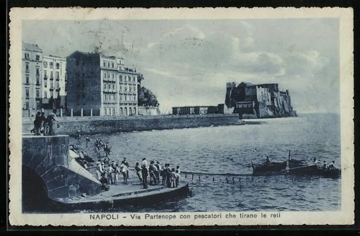 AK Napoli, Via Partenope con pescatori che tirano le reli