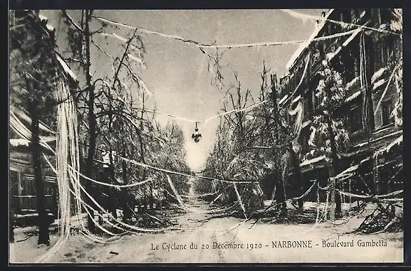 AK Narbonne, Le Cyclone du 1920, Boulevard Gambetta