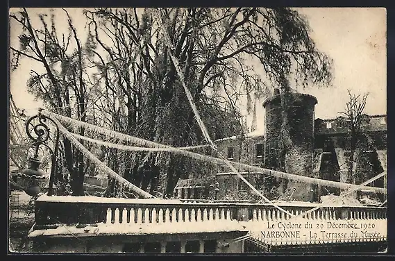 AK Narbonne, Le Cyclone du 1920, La Terrasse du Musée