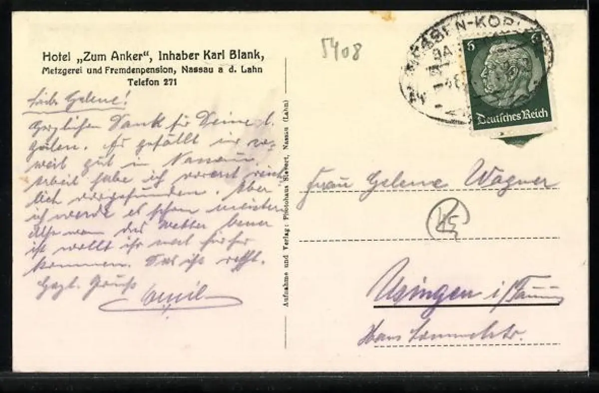 AK Nassau a. d. Lahn, Hotel Zum Anker, Inh. Karl Blank