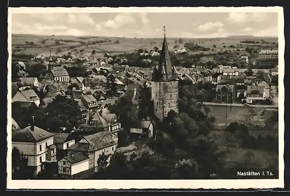 AK Nastätten /Taunus, Teilansicht mit Kirche aus der Vogelschau