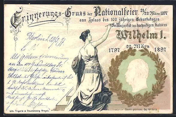AK Nationalfeier anlässlich des 100jährigen Geburtstages des Kaisers Wilhelm I., 22.3.1897