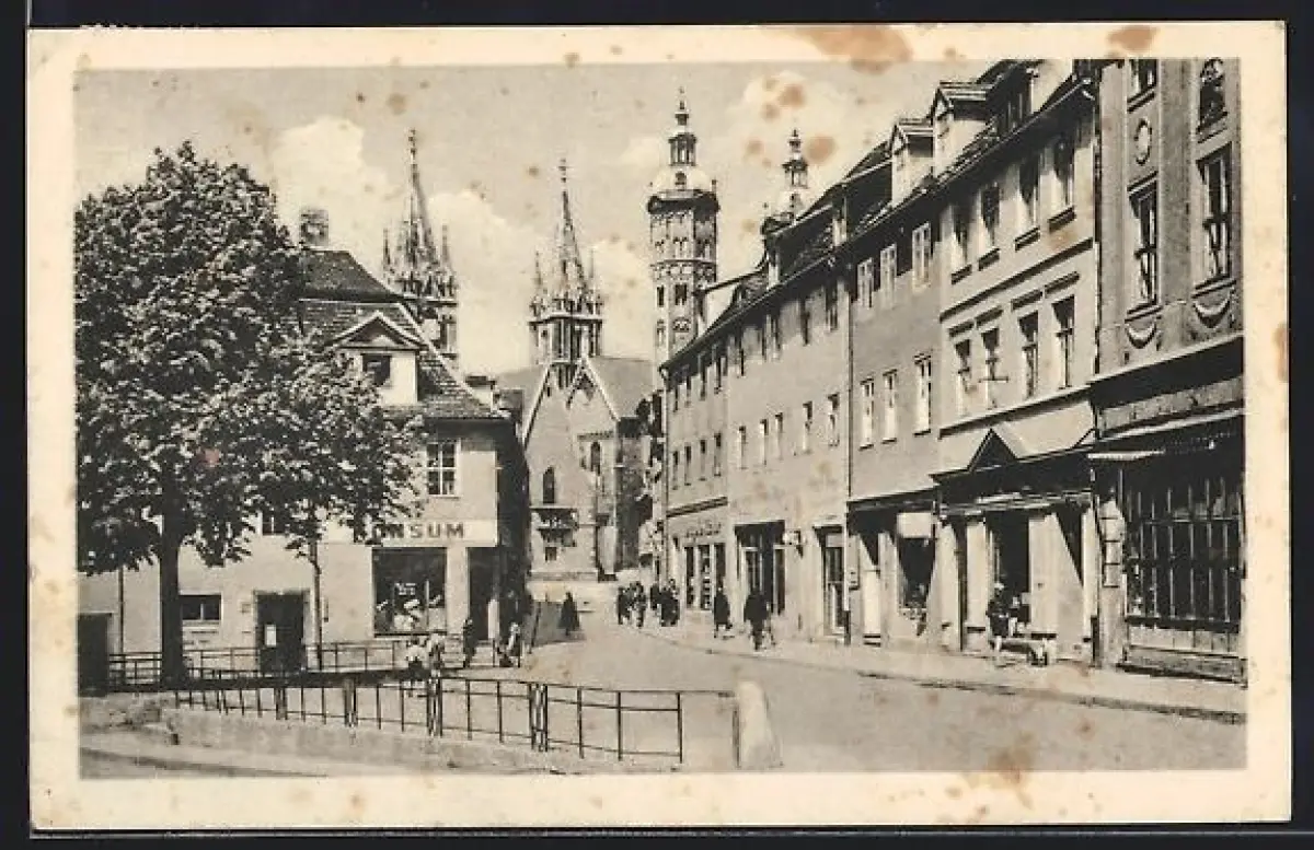 AK Naumburg / Saale, Strassenpartie am Steinweg mit Konsum