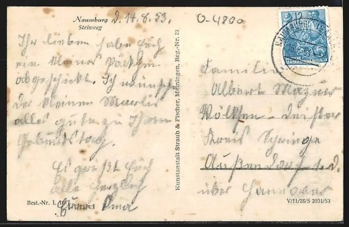 gelaufen 1953, Eckknicke links oben und rechts unten, guter Zustand