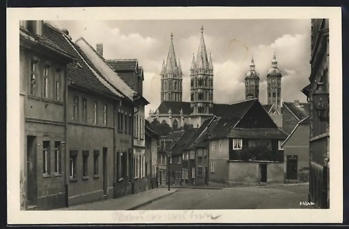 AK Naumburg /Saale, Strassenpartie mit Blick zum Dom