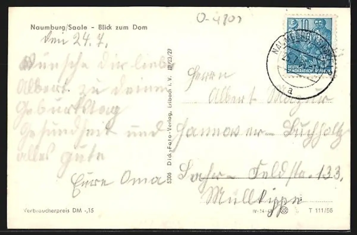 alte Ansichtskarte, gelaufen 1956, Stempelspur, Eckknicke links unten, guter Zustand
