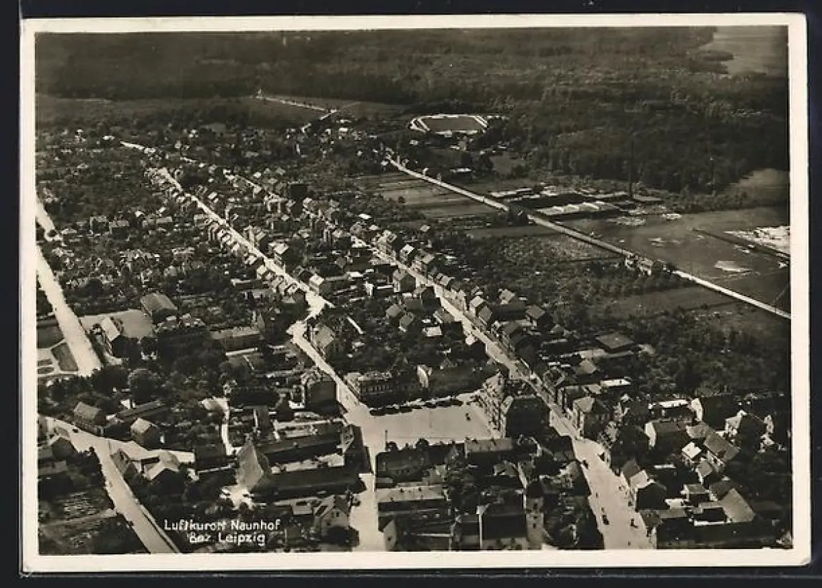 AK Naunhof /Leipzig, Teilansicht mit Strassenpartie, Fliegeraufnahme