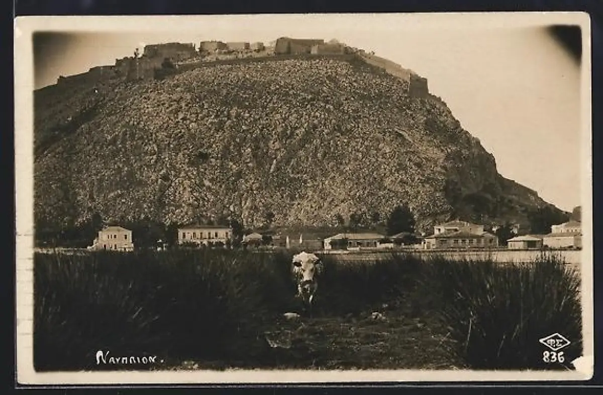 AK Nauplion, Ortsansicht mit Blick zur Festung