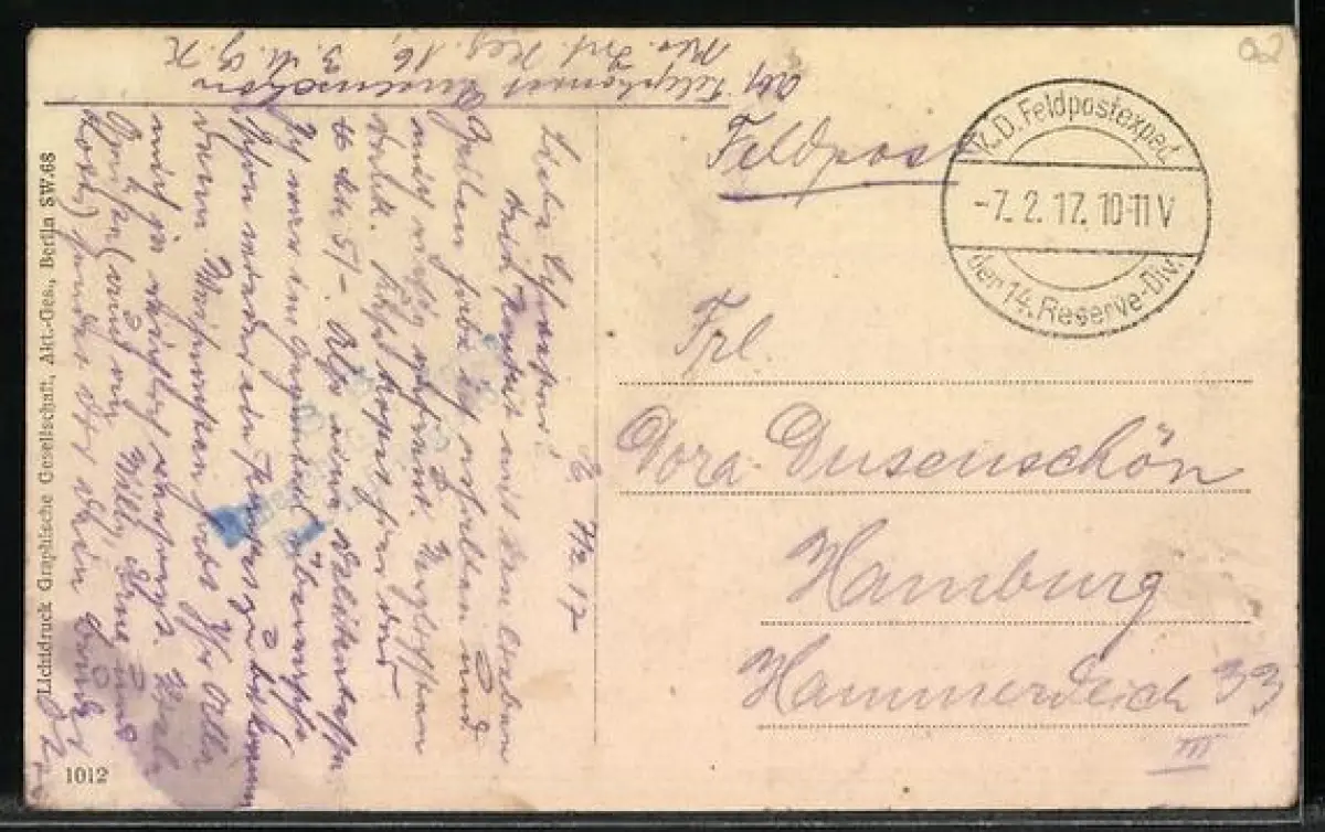 alte Ansichtskarte, gelaufen 1917, Eckknick unten links, guter Zustand
