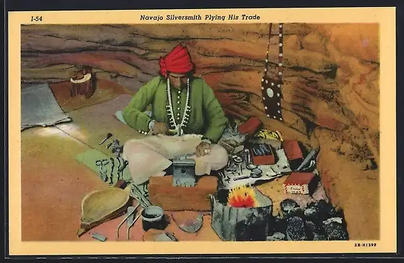 AK Navajo Silversmith Plying His Trade, Handwerker bei der Arbeit