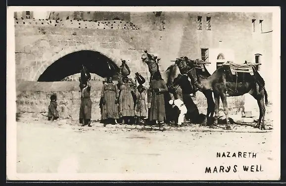 AK Nazareth, Mary`s Well, people with camels, getting water