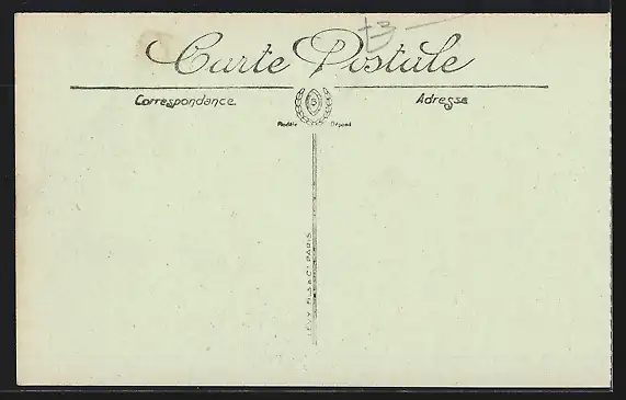 Personenbezogene Daten auf der Rückseite der Karte wurden durch blauen Textmarker unkenntlich gemacht. Die blauen Stellen sind auf die Vorderseite durchgeweicht und wirken sich negativ auf das Postkartenfoto aus