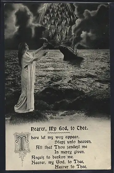 AK Nearer my God to Thee, Untergang der Titanic am 15.4.1912, Seelen der Verunglückten fahren in den Himmel