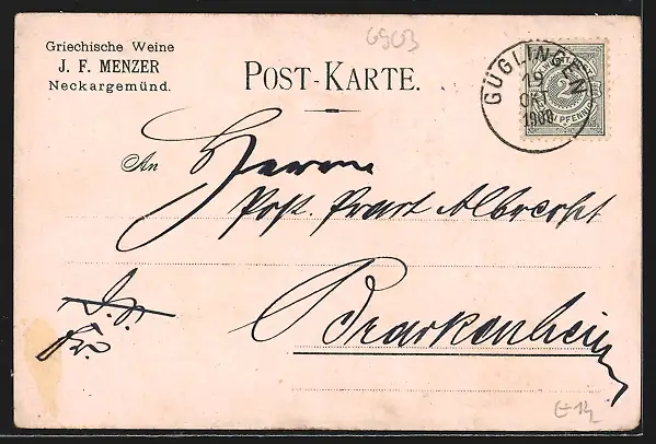 alte Ansichtskarte, gelaufen 1900, Ecken bestoßen, Eckknicke oben, guter Zustand