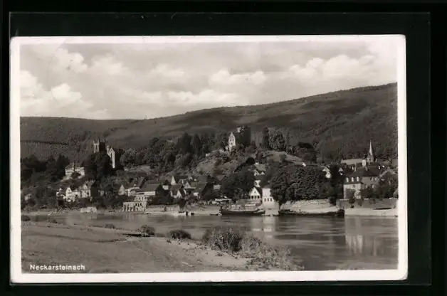 AK Neckarsteinach, Ortsansicht mit Flusspartie