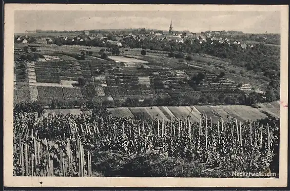 AK Neckarwestheim, Ortsansicht mit umliegenden Feldern