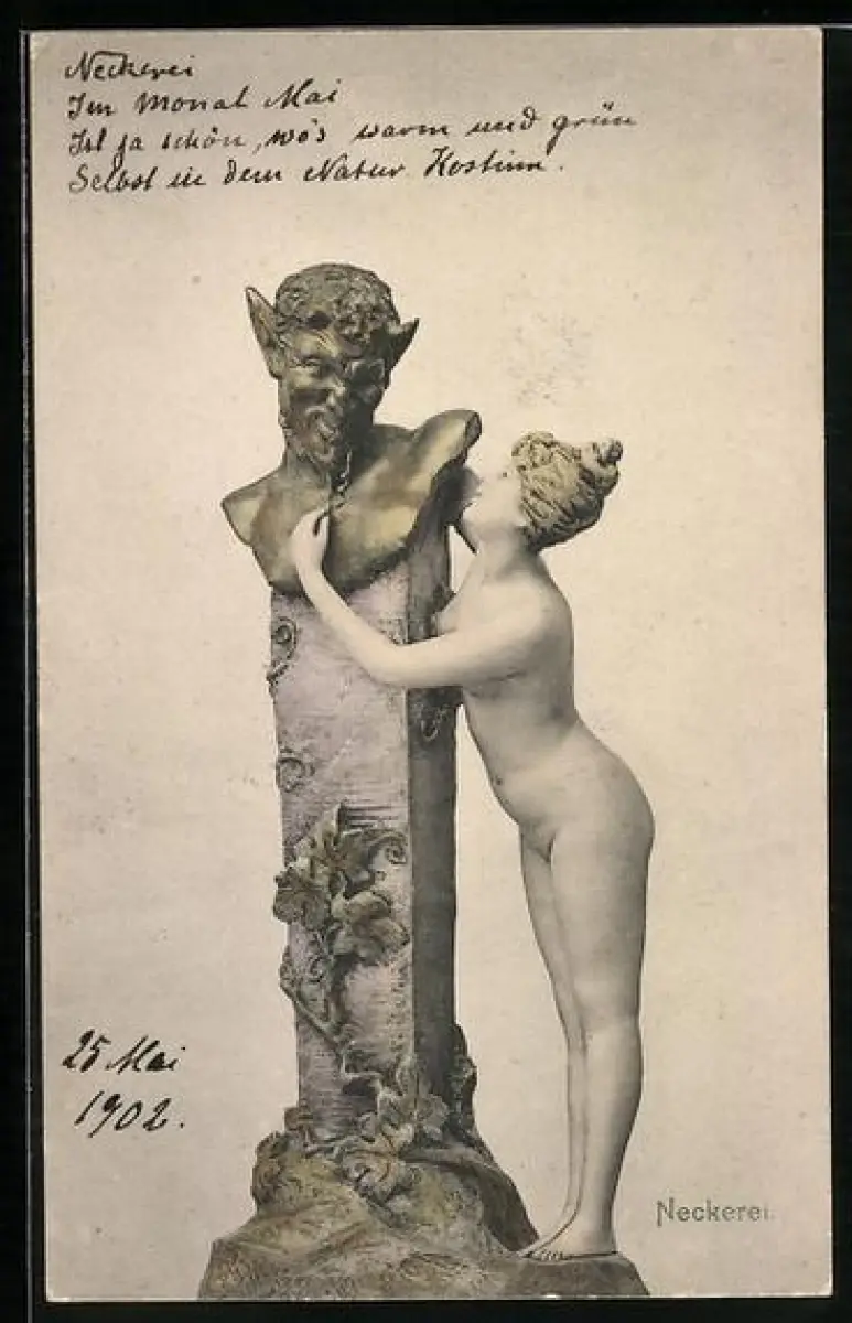 AK Neckerei, Nackte Frau mit Büste