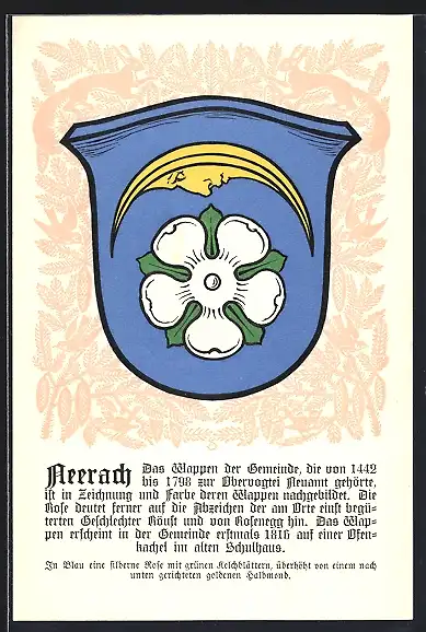 AK Neerach, Wappen auf Tannen-Ornamenten, Eichhörnchen, Info-Text