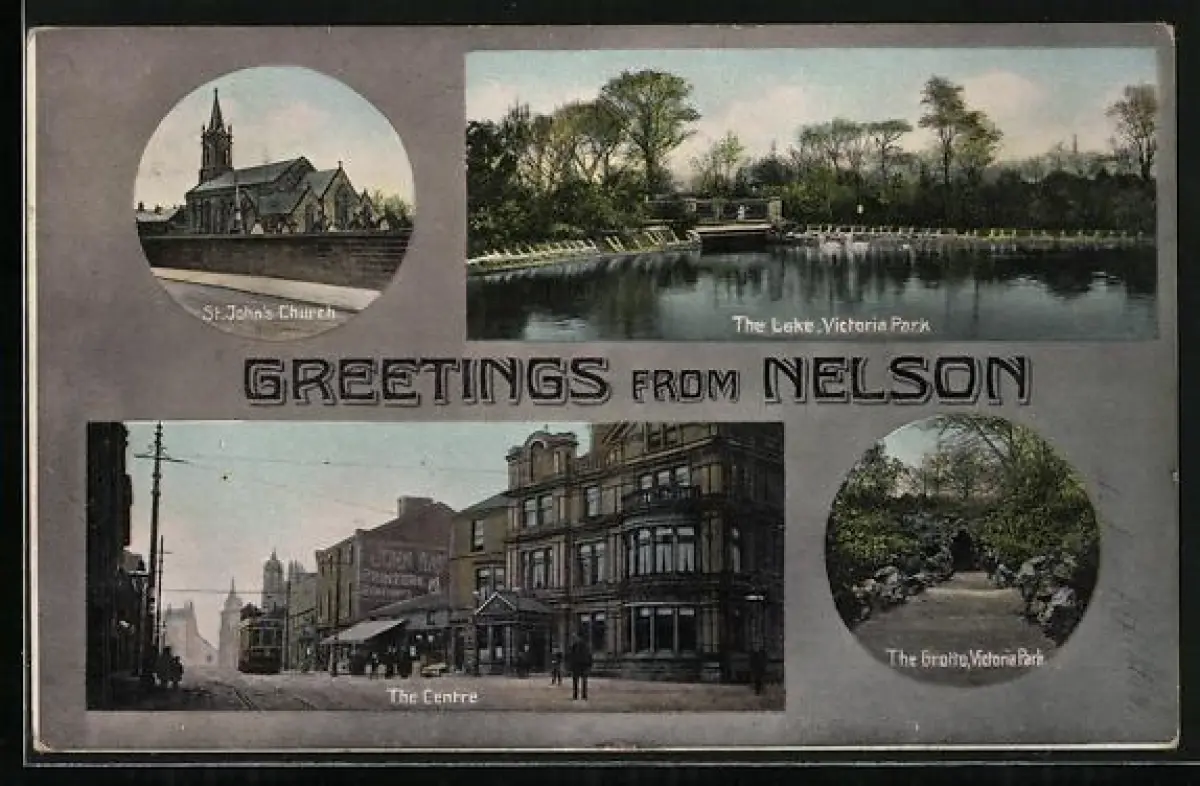 AK Nelson, The Lake in Victoria Park, The Grotto, The Centre, Strassenbahn