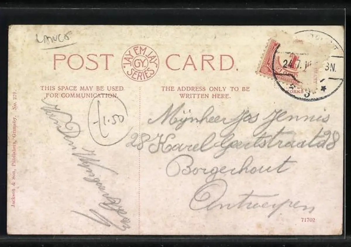 alte Ansichtskarte, gelaufen, Briefmarke entfernt, guter Zustand