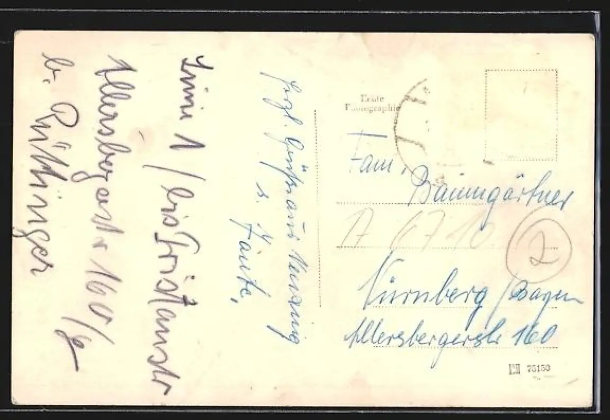 alte Ansichtskarte, gelaufen, Briefmarke entfernt, guter Zustand