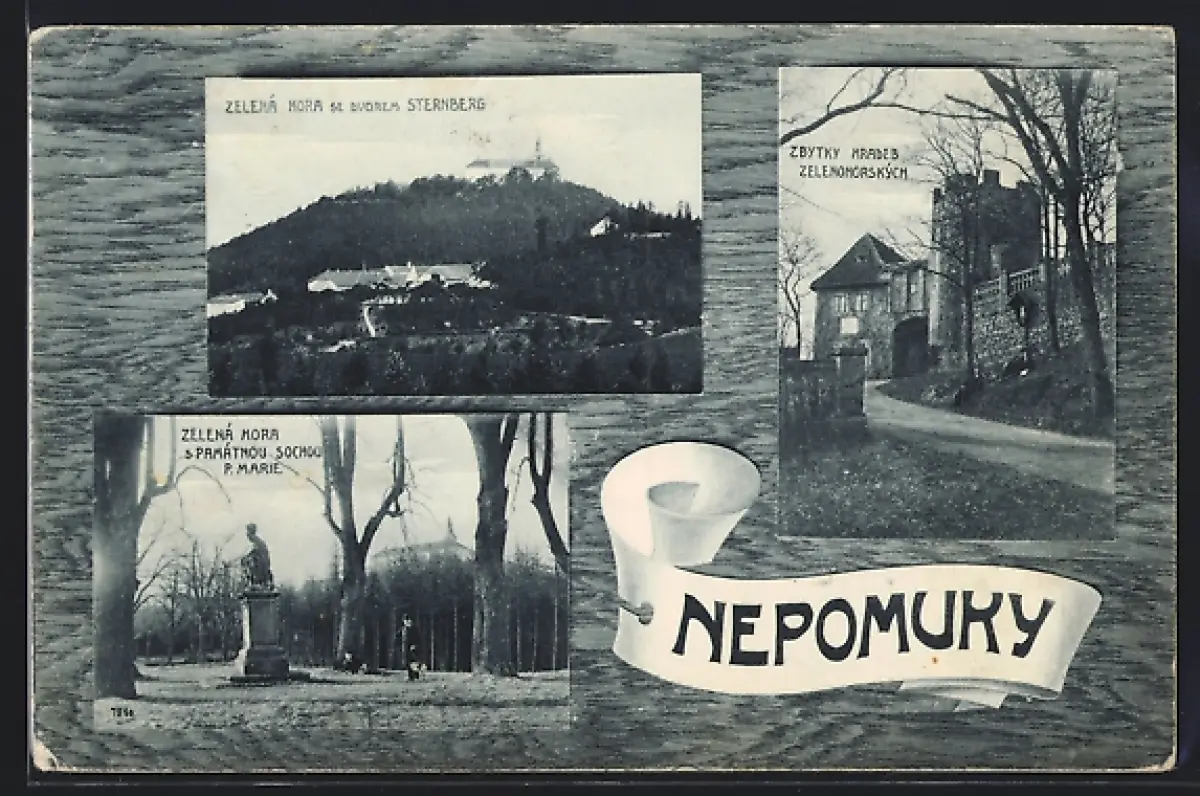 AK Nepomuk, Zelená Hora se dvorem Sternberg, Zbytky hradeb Zelenohorských, Zelená Mora s Památnou Sochou P. Marie