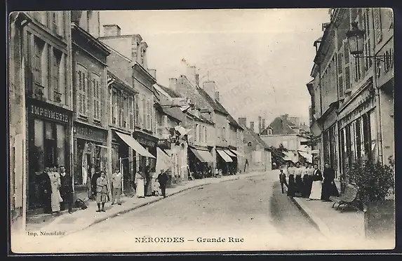 AK Nérondes, Grande Rue animée avec habitants et commerces