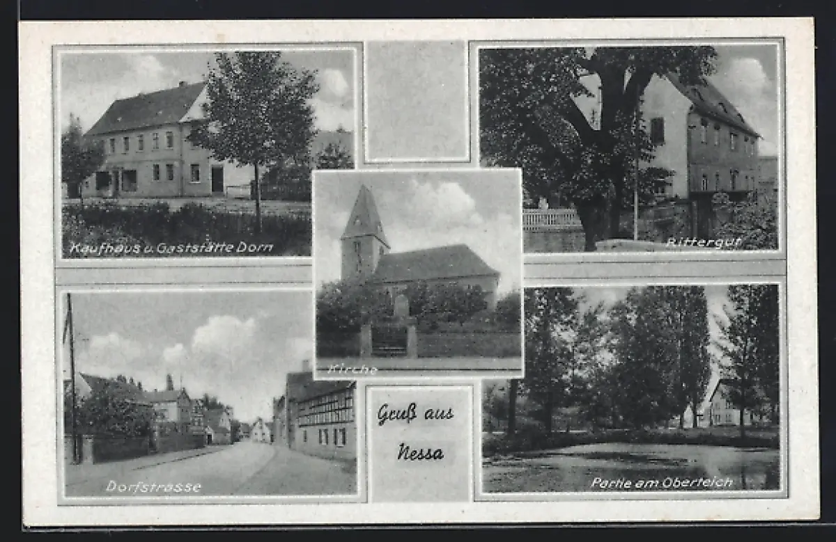 AK Nessa, Kaufhaus u. Gaststätte Dorn, Rittergut, Dorfstrasse