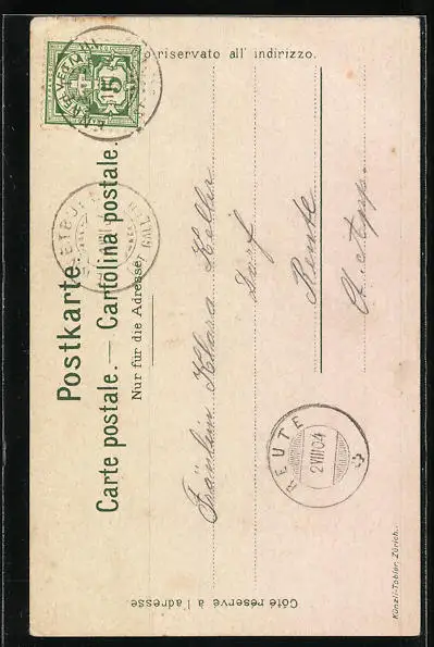 alte Ansichtskarte, gelaufen 1904, Eckknicke oben, guter Zustand