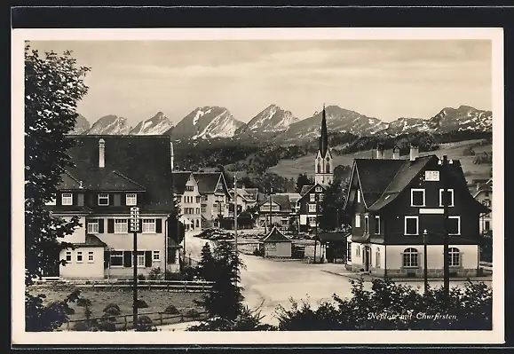 AK Nesslau, Ortspartie vor der Bergkette Churfirsten