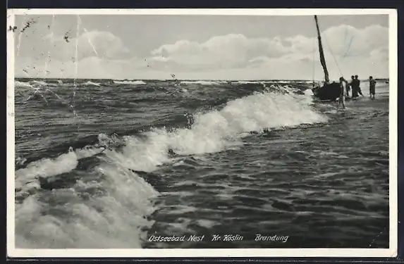 AK Nest /Kr. Köslin, Ostseebad, Brandung