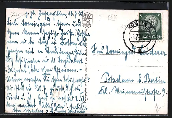 alte Ansichtskarte, gelaufen 1938, Eckknick re. unten, Bugspuren li. oben, guter Zustand