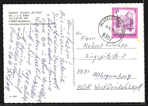 AK Nestelbach, Gasthof Zur Post in vier Ansichten