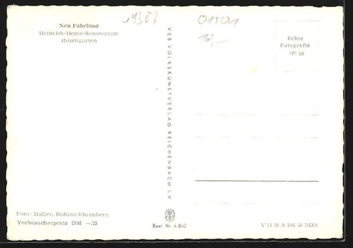 AK Neu Fahrland, Heinrich-Heine-Sanatorium, Rosengarten
