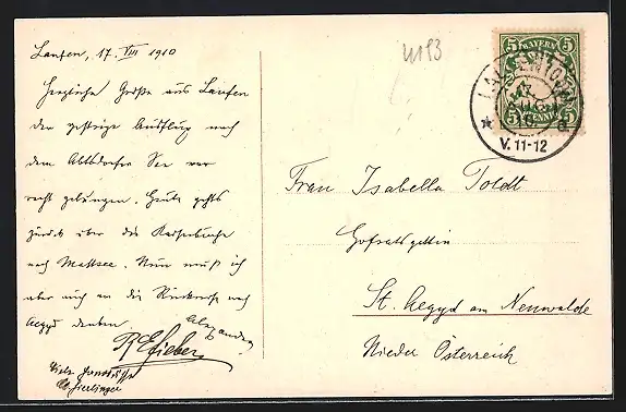 alte Ansichtskarte, gelaufen 1910, guter Zustand