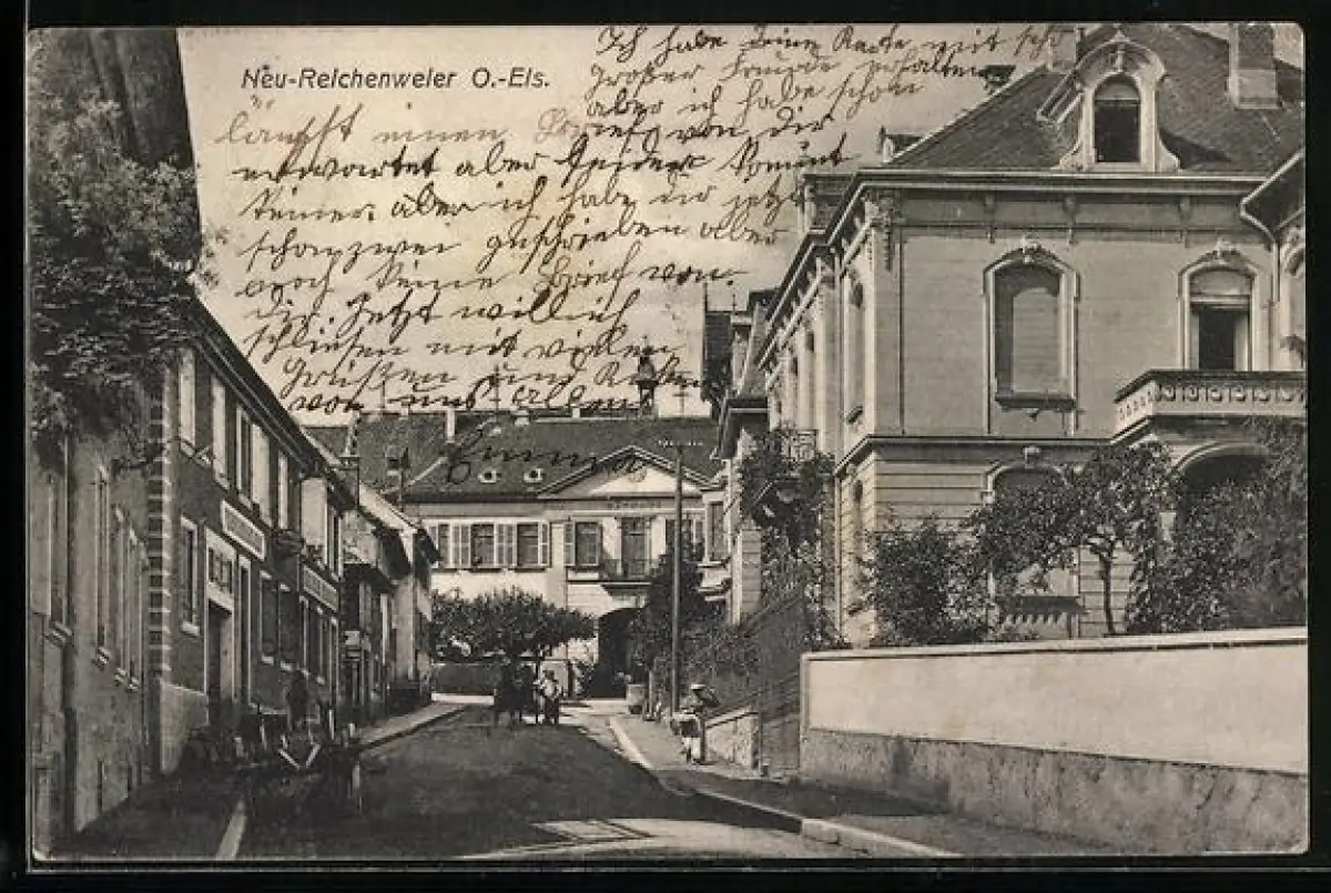 AK Neu-Reichenweier /O.-Els., Rue principale avec calèche et maisons élégantes