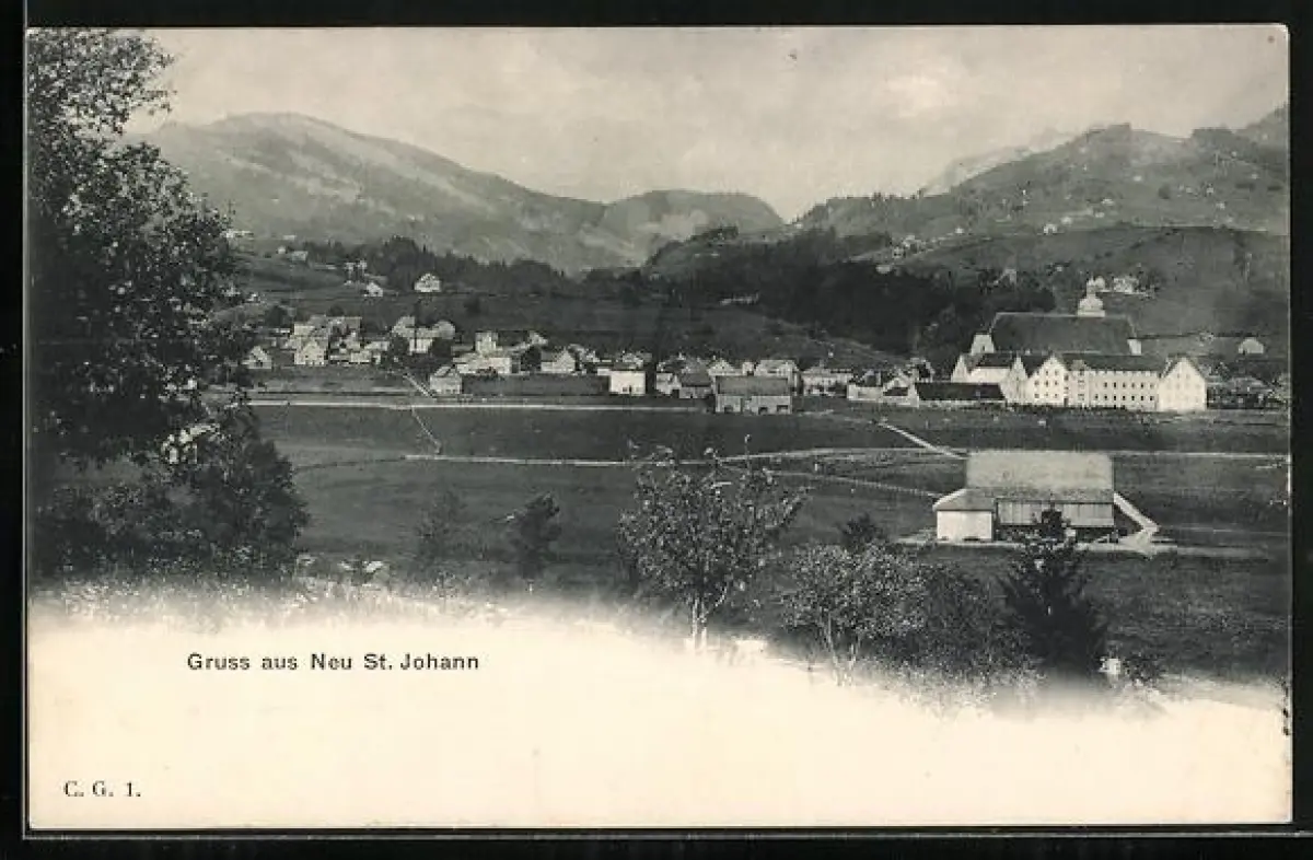 AK Neu St. Johann, Totalansicht von Anhöhe aus auf Häuser und Landschaft