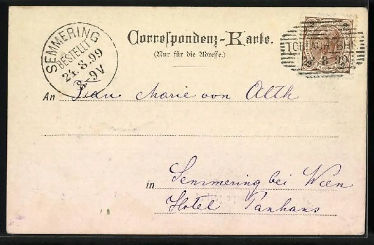 alte Ansichtskarte, gelaufen 1899, Stempelspur, guter Zustand
