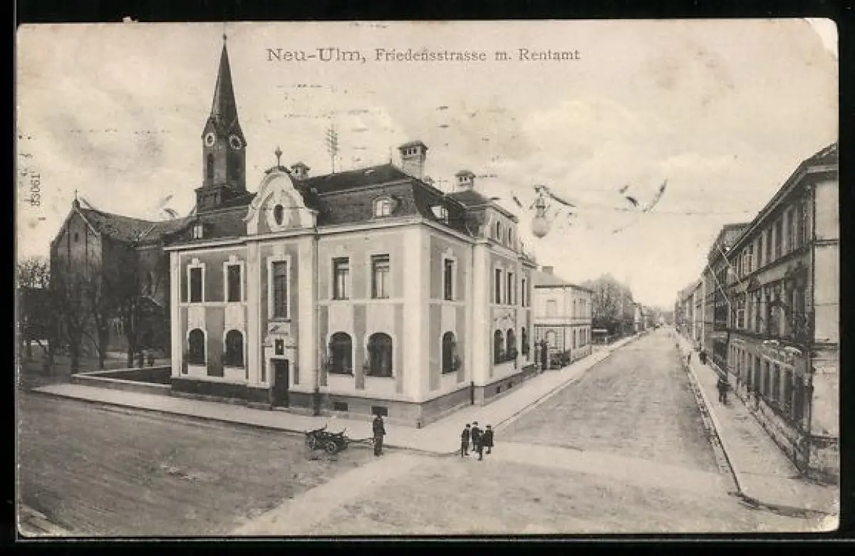AK Neu-Ulm, Friedensstrasse mit Rentamt