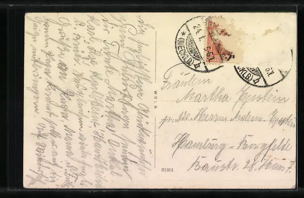 alte Ansichtskarte, gelaufen, Briefmarke entfernt, Eckknick oben li. u. unten re, guter Zustand