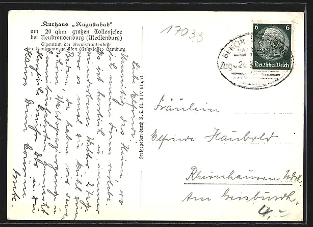 AK Neubrandenburg, Kurhaus Augustabad am Tollensee