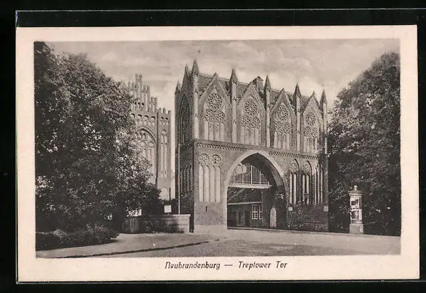 AK Neubrandenburg, Treptower Tor, Litfasssäule