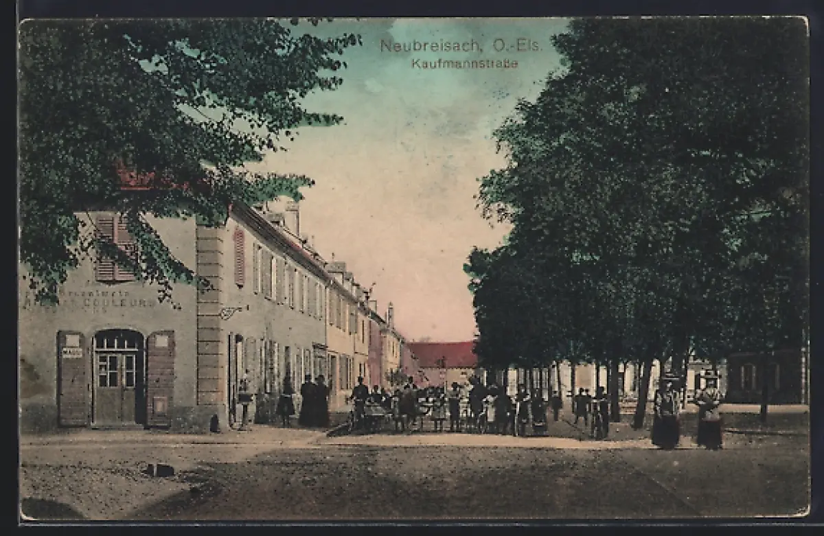 AK Neubreisach, Kaufmannstrasse mit Passanten