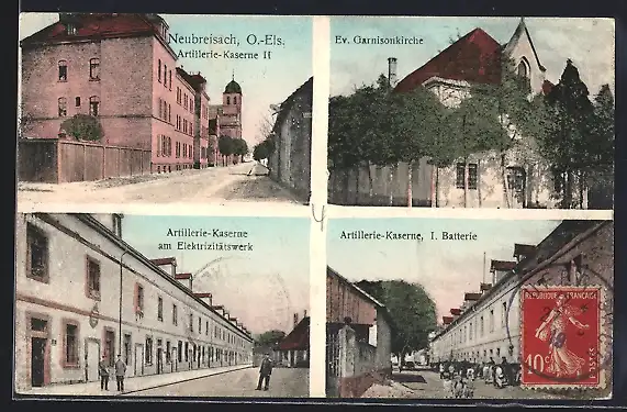 AK Neubreisach /O.-Els., Artillerie-Kaserne am Elektrizitätswerk, Artillerie-Kaserne II, Evangelische Garnisonkirche