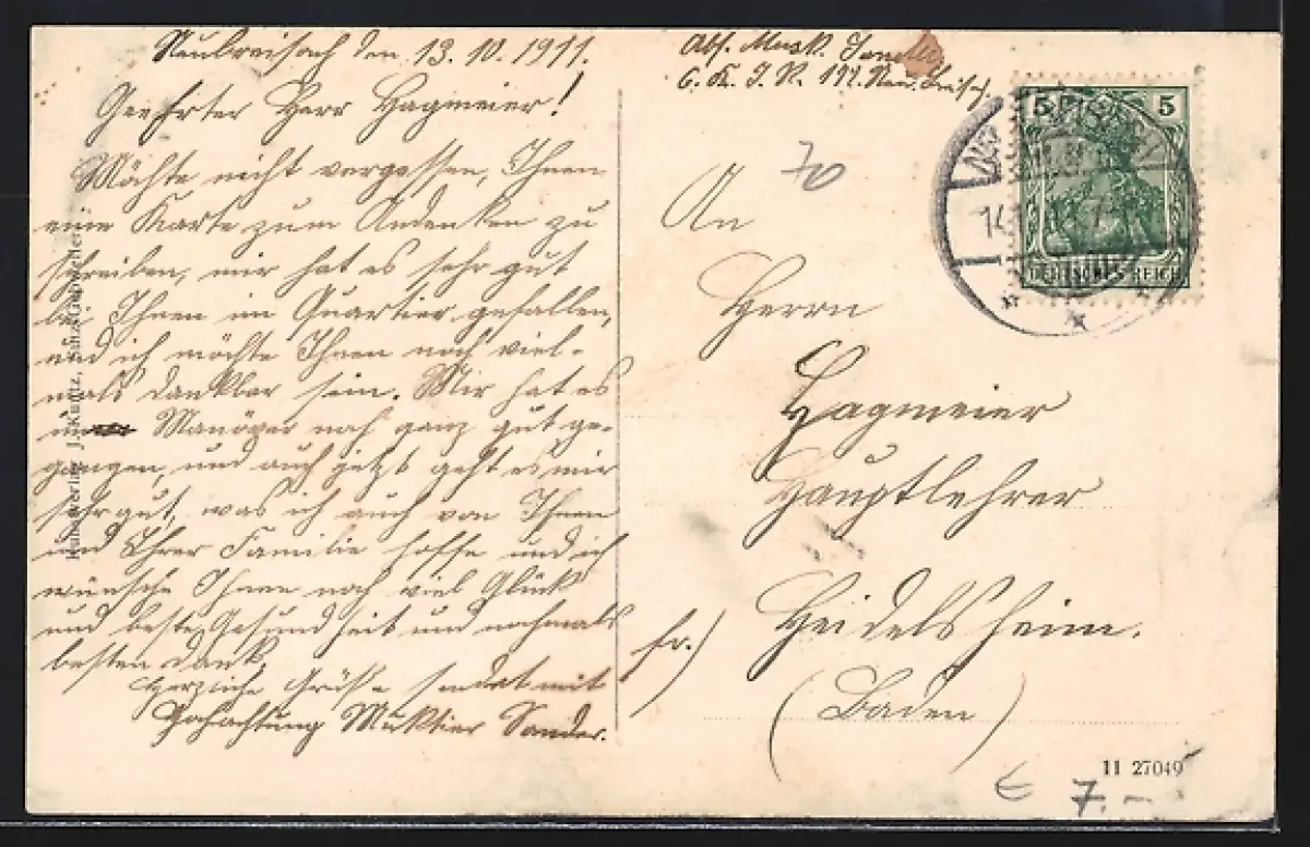 alte Ansichtskarte, gelaufen 1911, guter Zustand