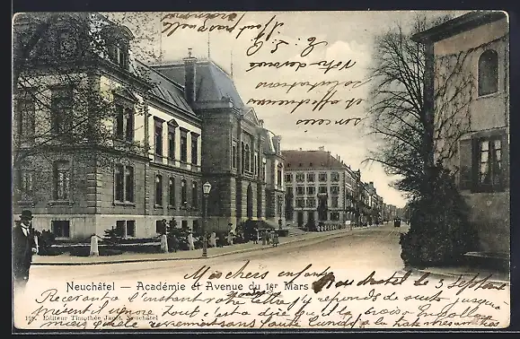 AK Neuchatel, Academie et Avenue du 1er Mars, Häuserzeilen