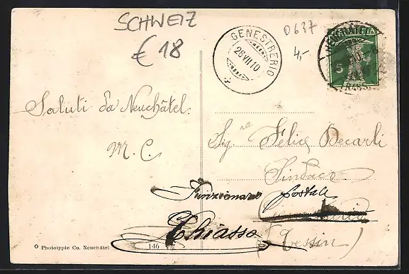 gelaufen 1910, Eckknick unten li., guter Zustand