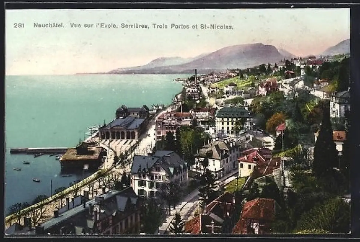 AK Neuchâtel, Vue sur l`Evole, Serrières, Trois Portes et St-Nicolas