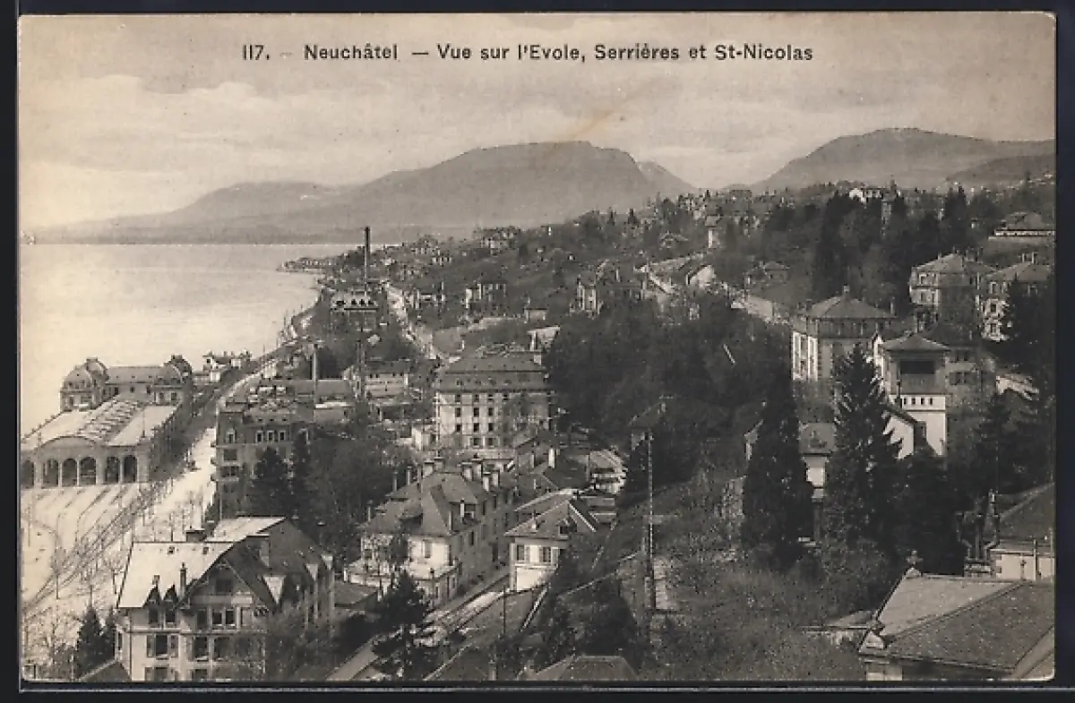 AK Neuchâtel, Vue sur l`Evole, Serrières et St-Nicolas