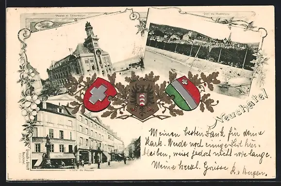 AK Neuchatel, l`Hotel du Faucon, Postes et Télegraphes